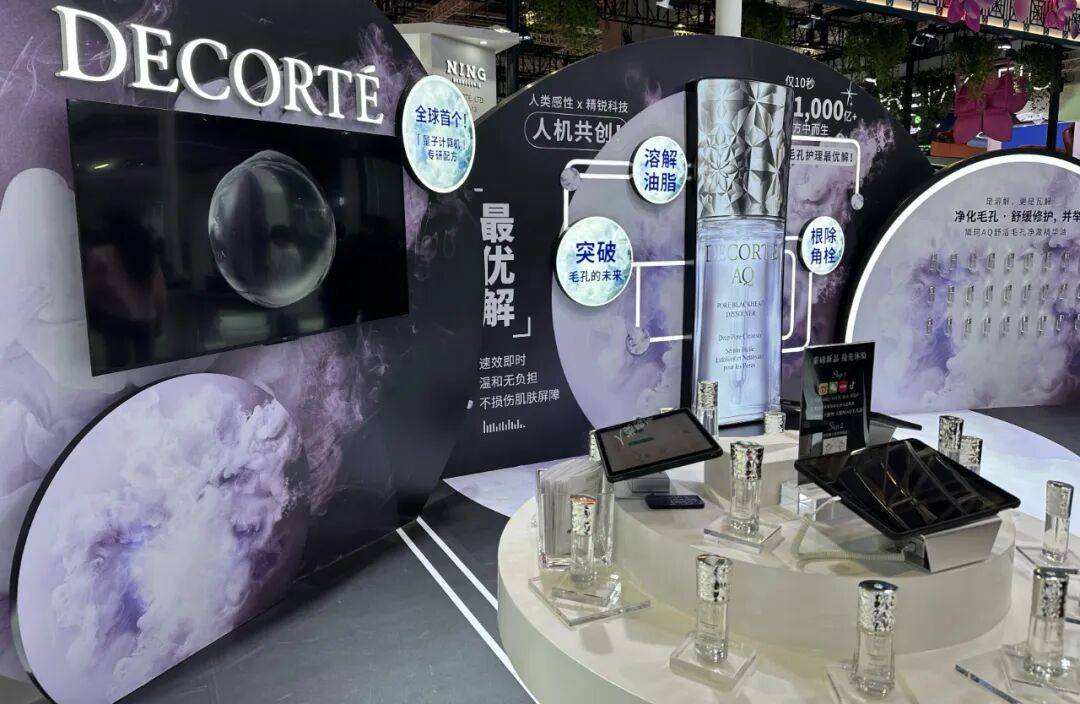 高丝展台以黛珂AQ舒活毛孔净澈精华油为核心展品,该产品采用量子计算技术,从超过1000亿种配方组合中筛选出有效溶解毛孔角栓最佳方案,仅用10秒即可完成传统需数十年的人工试验过程。这款精华油半年前已在日本市场取得良好销售成绩,预计2026年2月进入中国市场。
