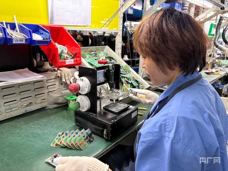 彩虹集团开关车间内,工人正检验电热毯开关半成品是否合格(央广网发 见习记者 唐诗敏 摄)