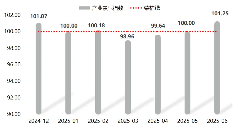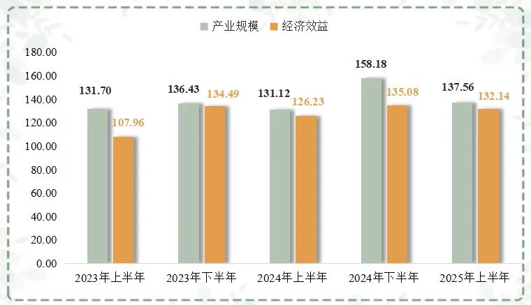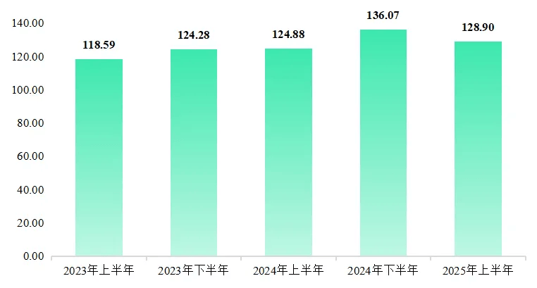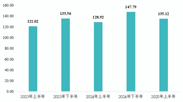 产业发展指数小幅下降,上半年收于135.12点,环比下降12.67点,但仍高于2024年同期水平。