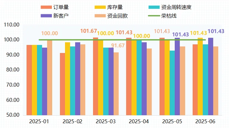 从各月表现来看,4、5月企业经营类景气表现最好,均有三项指标景气指数处于景气区间。其中,4月订单量、库存量和速度景气指数表现良好,指数分别收于101.43点、100.00点和100.00点;5月订单量、库存量仍位于景气区间,分别收于101.43点、100.00点,新客户指数收于101.43点,环比上升2.86点,突破至荣枯线月,企业经营类景气指数均有两项位于荣枯线月订单量和库存量景气指数表现坚挺,分别收于101.67点和100.00点;6月则是库存量和新客户景气指数表现亮眼,均收于101.43点,处于景气区间。