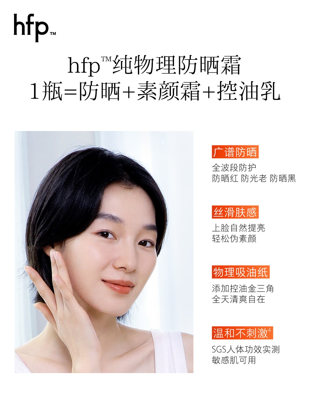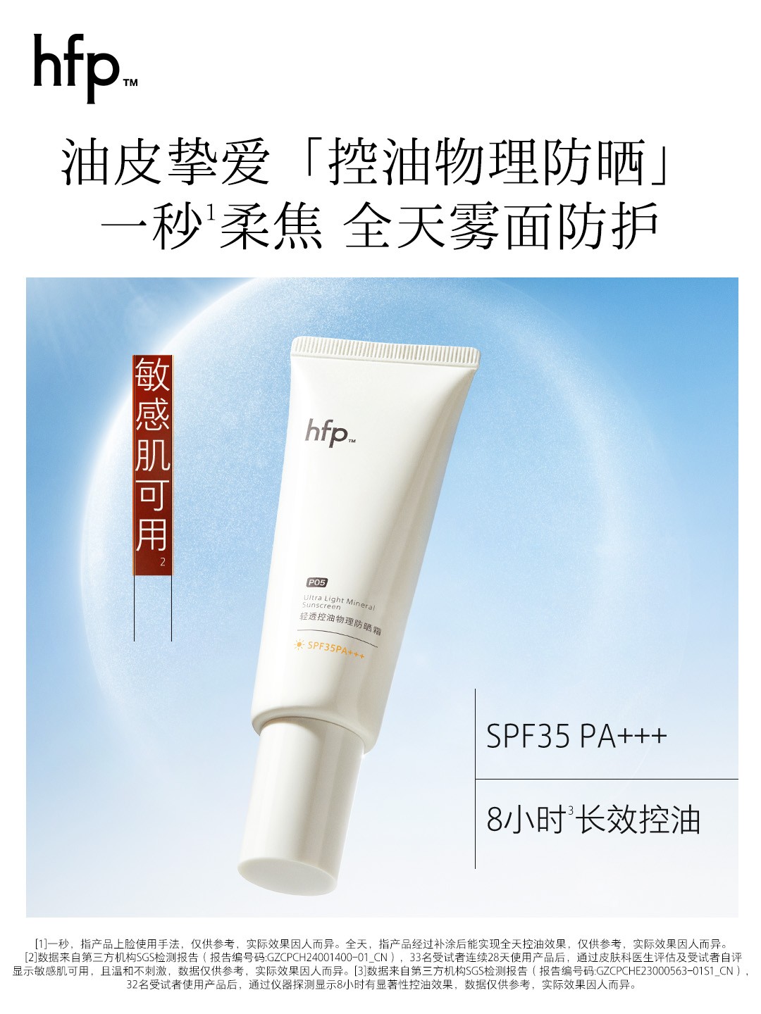 夏季高温,油性皮肤人群出油加剧,普通防晒肤感差、容易黏腻,而敏感肌人群选用防晒产品则有过敏不适的担忧。2025年,hfp全新推出轻透控油物理防晒霜,为油皮及敏皮人群提供更温和控油的防晒方案。
