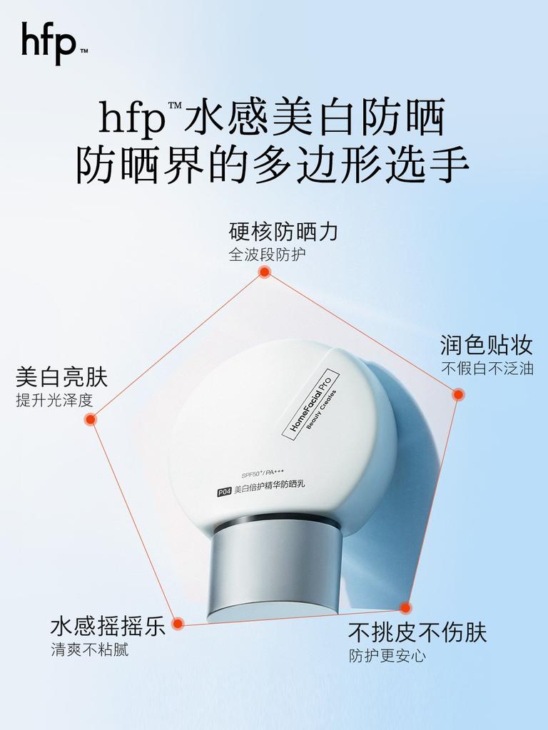 防晒市场呈现“百舸争流”之势,不少品牌积极构建差异化优势,从产品配方到使用体验持续刷新用户认知。其中,国内主打成分的功效护肤品牌hfp(全称为HomeFacialPro,下不赘述)先后推出美白倍护精华防晒乳和轻透控油物理防晒霜,满足不同用户人群的防晒需求。